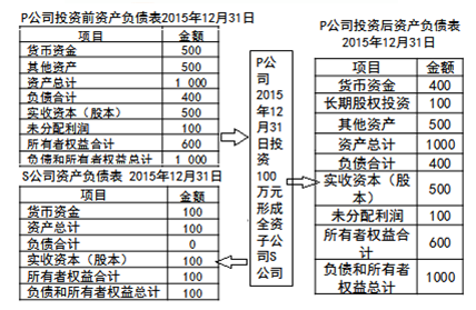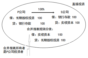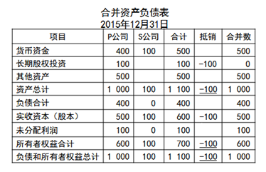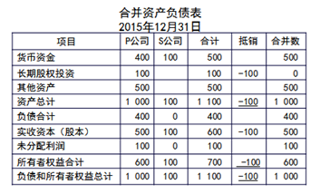 、貾公司投出100萬元貨幣資金形成S公司,作為企業(yè)集團整體,相當于貨幣資金100萬元由一個賬戶轉(zhuǎn)入另一個賬戶,P公司個別財務(wù)報表中的長期股權(quán)投資和S公司個別財務(wù)報表中的實收資本不應(yīng)存在,應(yīng)予抵銷。