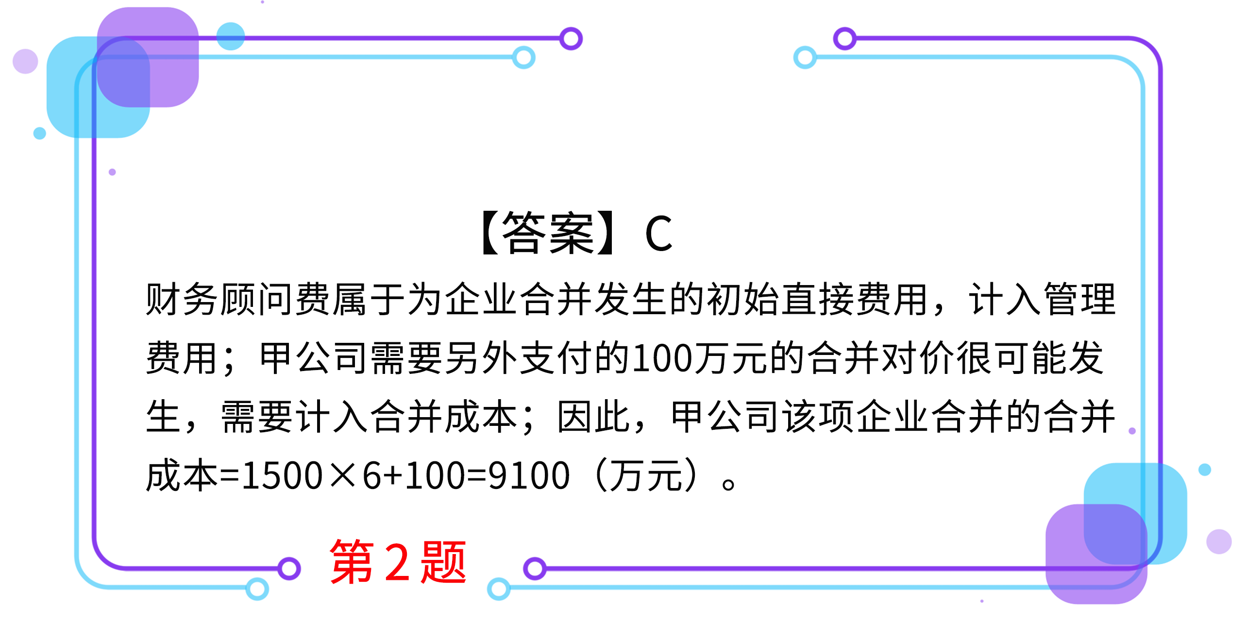 2.2×14年1月1日,甲公司通過向乙公司股東定向增發(fā)1500萬股普通股(每股面值為1元,市價為6元),取得乙公司80%股權(quán),并控制乙公司,另以銀行存款支付財務(wù)顧問費300萬元。雙方約定,如果乙公司未來3年平均凈利潤增長率超過8%,甲公司需要另外向乙公司控股股東支付100萬元的合并對價;當日,甲公司預(yù)計乙公司未來3年平均凈利潤增長率很可能達到10%。該項交易前,甲公司與乙公司及其控股股東不存在關(guān)聯(lián)關(guān)系。不考慮其他因素,甲公司該項企業(yè)合并的合并成本是( )。