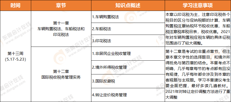 注冊會計(jì)師稅法學(xué)習(xí)周計(jì)劃