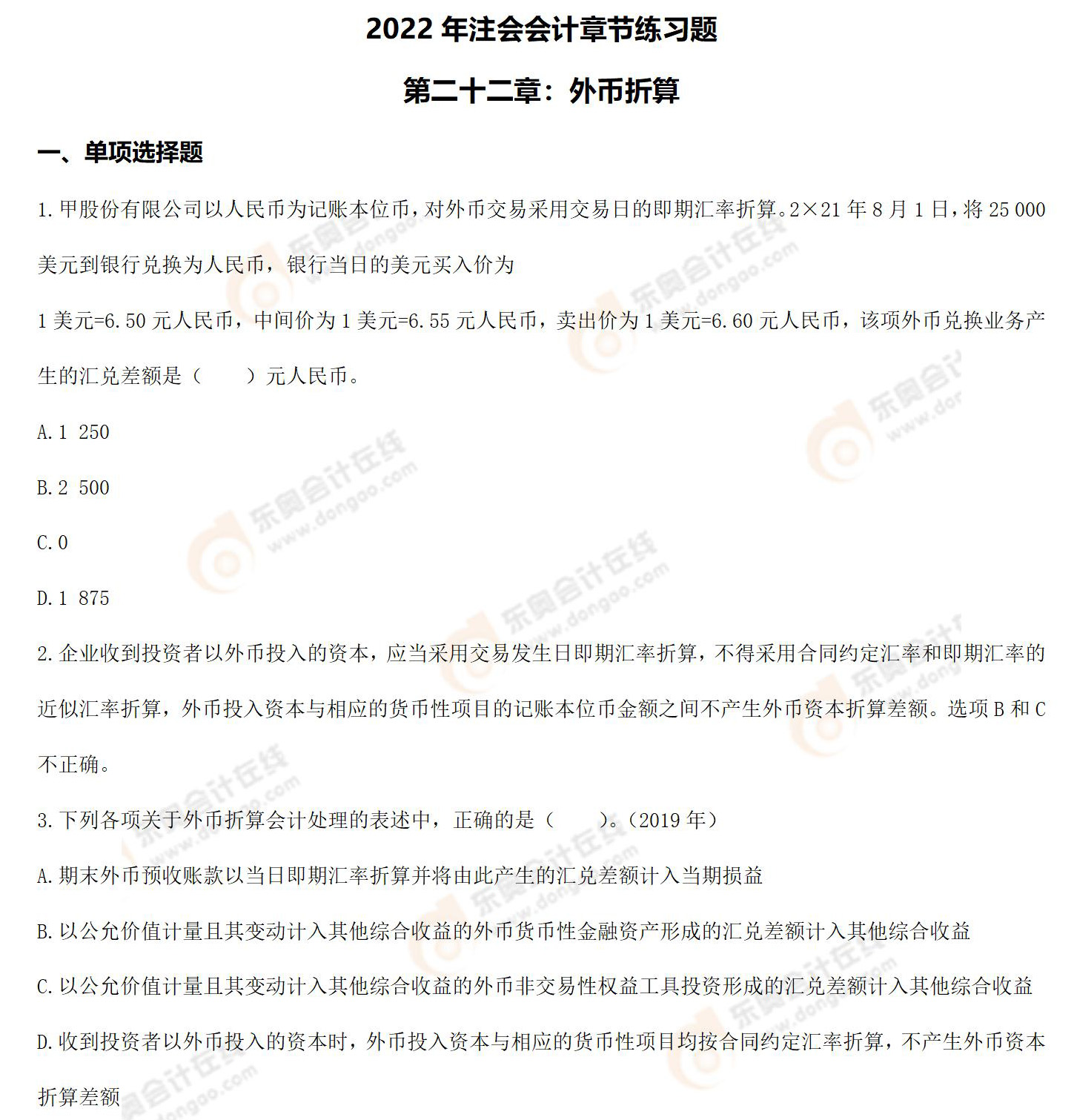 注:章節(jié)練習(xí)題出自東奧名師張志鳳老師的2022年《會(huì)計(jì)》基礎(chǔ)精講班課程講義
