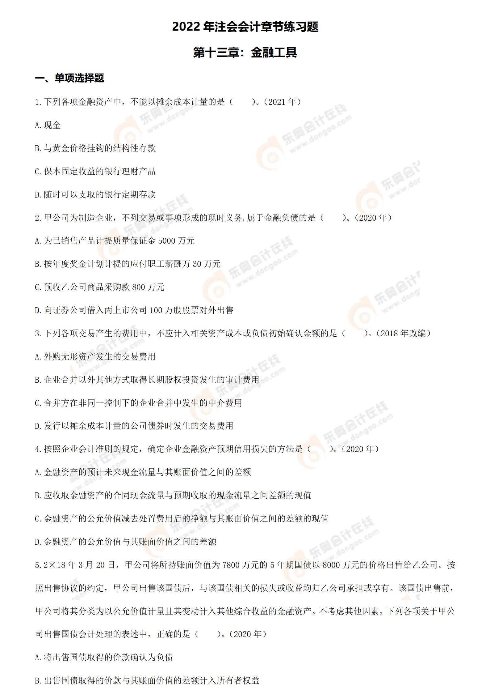 注:章節(jié)練習(xí)題出自東奧名師張志鳳老師的2022年《會(huì)計(jì)》基礎(chǔ)精講班課程講義