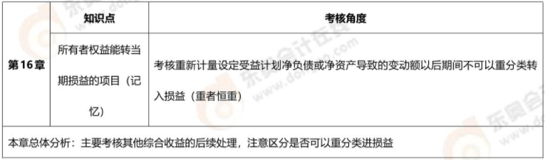 本章考點集中在其他綜合收益部分,通常在客觀題中考查其他綜合收益是否可以結(jié)轉(zhuǎn)進(jìn)損益的辨析
