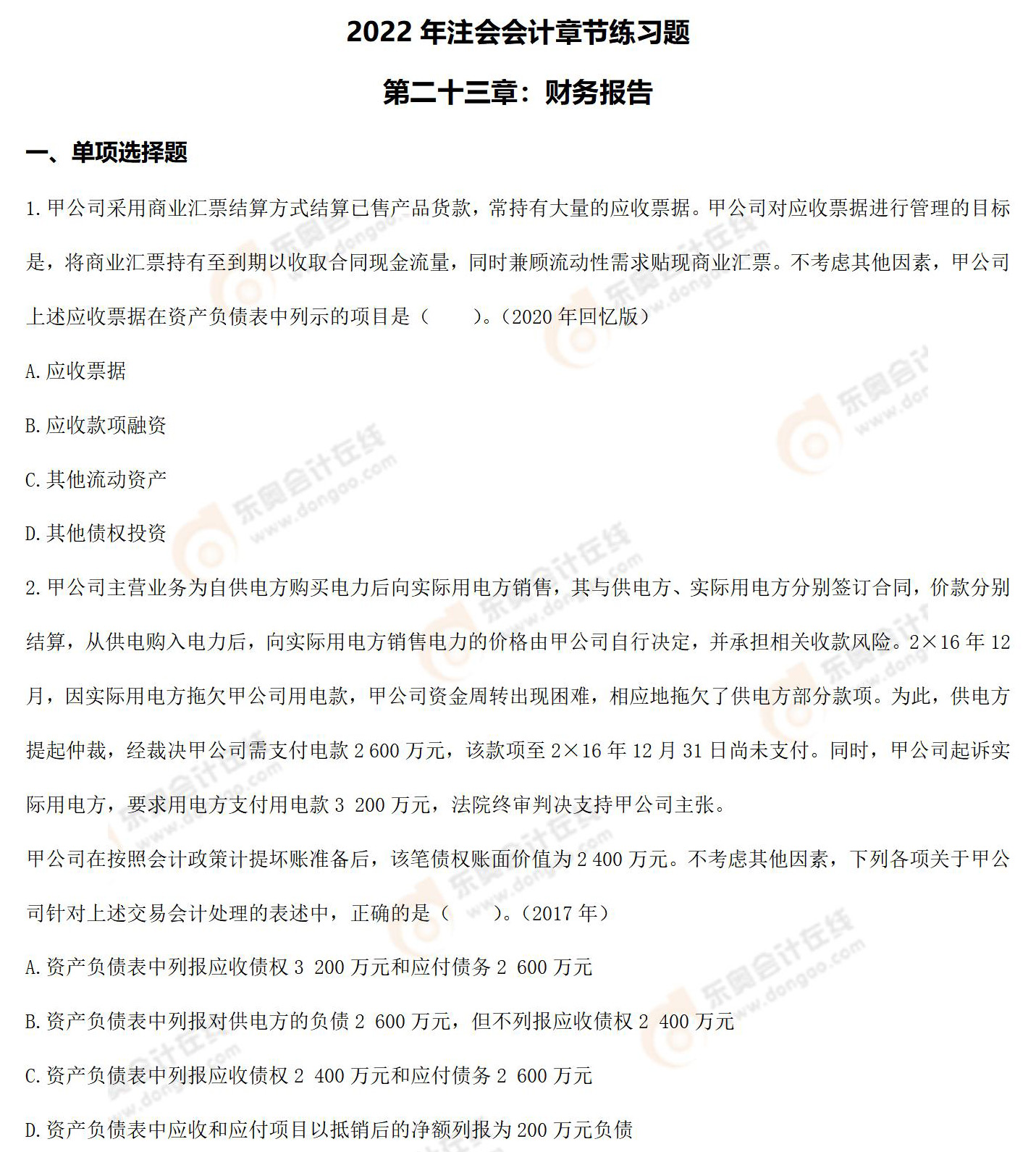 2023年注冊(cè)會(huì)計(jì)師會(huì)計(jì)科目備考正在進(jìn)行中,第二十三章內(nèi)容為財(cái)務(wù)報(bào)告,本章節(jié)主要涉及資產(chǎn)負(fù)債表項(xiàng)目流動(dòng)性與非流動(dòng)性的劃分、現(xiàn)金流量表項(xiàng)目的分類與填列、關(guān)聯(lián)方的判斷、中期財(cái)務(wù)報(bào)告的編制要求、報(bào)告分部的認(rèn)定等。還想了解哪些章節(jié)內(nèi)容信息,請(qǐng)隨東奧一起閱讀本文,了解詳細(xì)內(nèi)容!