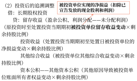 關(guān)鍵點(diǎn):剩余持股比例部分應(yīng)視同取得投資時(shí)點(diǎn)即采用權(quán)益法核算,即對(duì)剩余持股比例投資追溯調(diào)整,將其調(diào)整到權(quán)益法核算的結(jié)果。