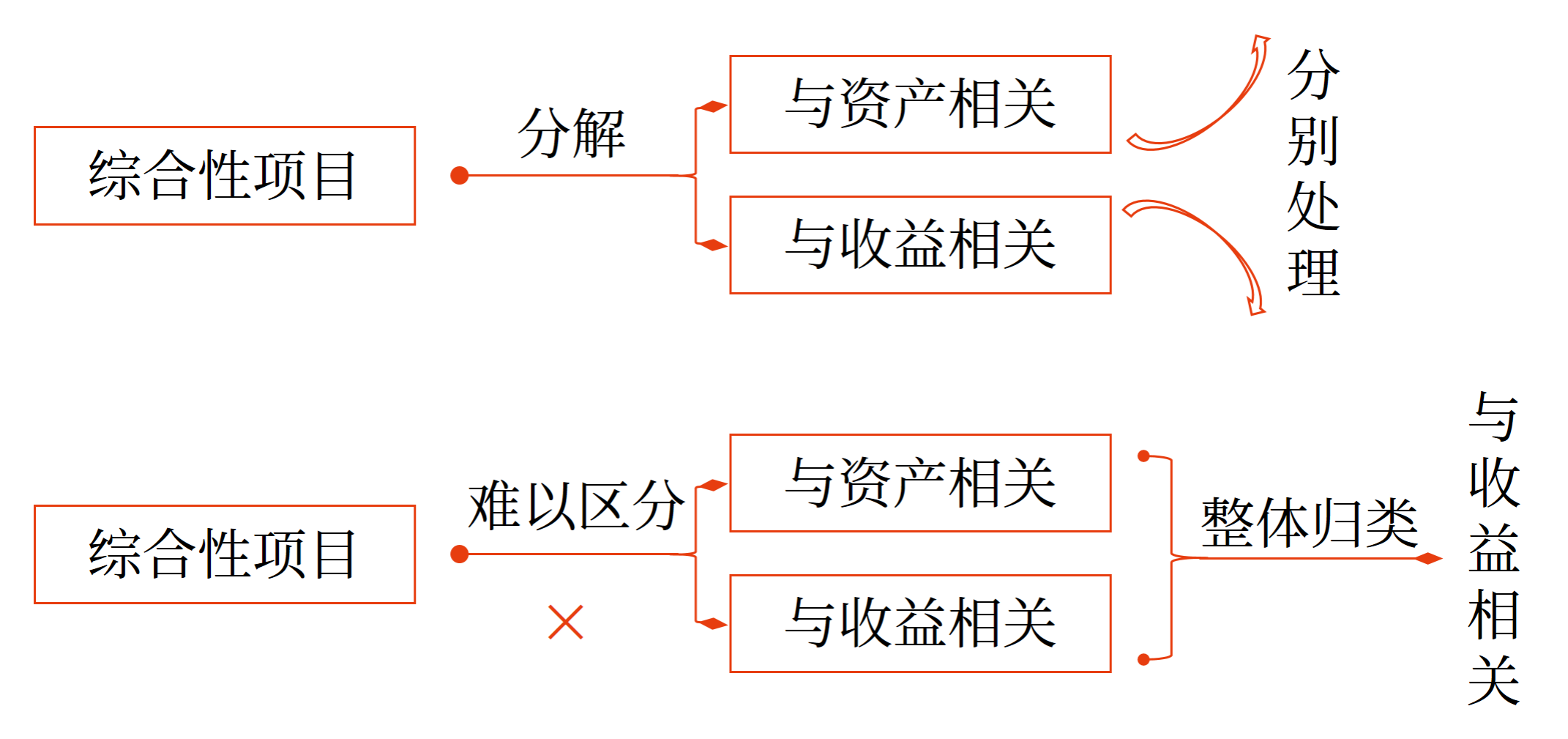 綜合性項(xiàng)目政府補(bǔ)助同時(shí)包含與資產(chǎn)相關(guān)的政府補(bǔ)助和與收益相關(guān)的政府補(bǔ)助,企業(yè)需要將其進(jìn)行分解并分別進(jìn)行會(huì)計(jì)處理;難以區(qū)分的,企業(yè)應(yīng)當(dāng)將其整體歸類為與收益相關(guān)的政府補(bǔ)助進(jìn)行處理。