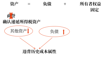 其原因在于該項交易不是企業(yè)合并,遞延所得稅資產(chǎn)不能對應(yīng)商譽;因該項交易或事項發(fā)生時既不影響會計利潤,也不影響應(yīng)納稅所得額,所以遞延所得稅資產(chǎn)不能對應(yīng)“所得稅費用”科目,從而不會影響留存收益,交易發(fā)生時產(chǎn)生暫時性差異的業(yè)務(wù)也不會涉及股本(或?qū)嵤召Y本)、資本公積和其他綜合收益,因此遞延所得稅資產(chǎn)不能對應(yīng)所有者權(quán)益。若確認遞延所得稅資產(chǎn),為使會計等式平衡,則只能增加負債的價值或減少其他資產(chǎn)的價值,這種會計處理違背歷史成本計量屬性,因此不確認遞延所得稅資產(chǎn)。