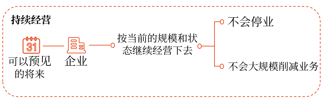 持續(xù)經(jīng)營(yíng),是指在可以預(yù)見的將來,企業(yè)將會(huì)按當(dāng)前的規(guī)模和狀態(tài)繼續(xù)經(jīng)營(yíng)下去,不會(huì)停業(yè),也不會(huì)大規(guī)模削減業(yè)務(wù)。