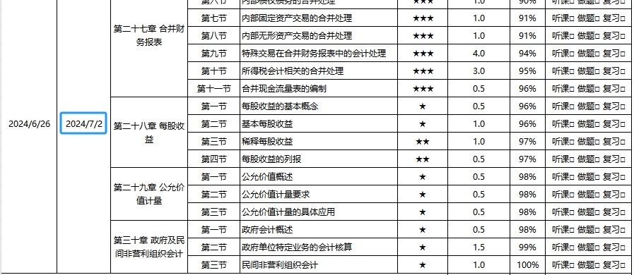 東奧會計在線為大家準備了一份超詳細的基礎階段學習計劃,本計劃可以根據(jù)考生實際開始學習時間及每周學習時長,規(guī)劃每周學習任務,同時標注各章節(jié)的重要程度及建議學習時長,幫助考生有效利用學習時間。計劃表中還有學習打卡任務欄,一起來看!