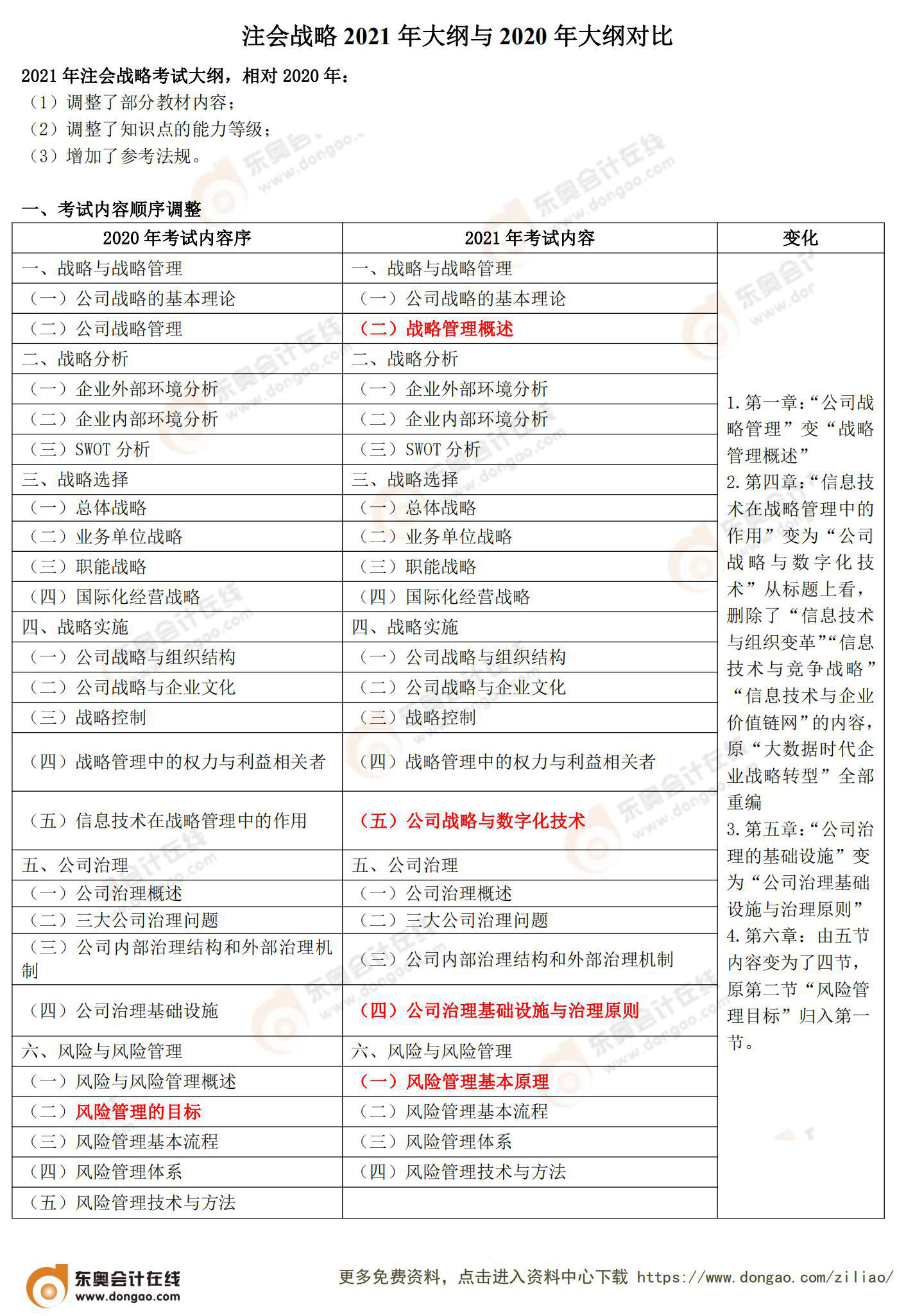 說明:因考試政策、內(nèi)容不斷變化與調(diào)整,東奧會計(jì)在線提供的以上注會考試大綱變化對比等信息僅供參考,如有異議,請考生以權(quán)威部門公布的內(nèi)容為準(zhǔn)!