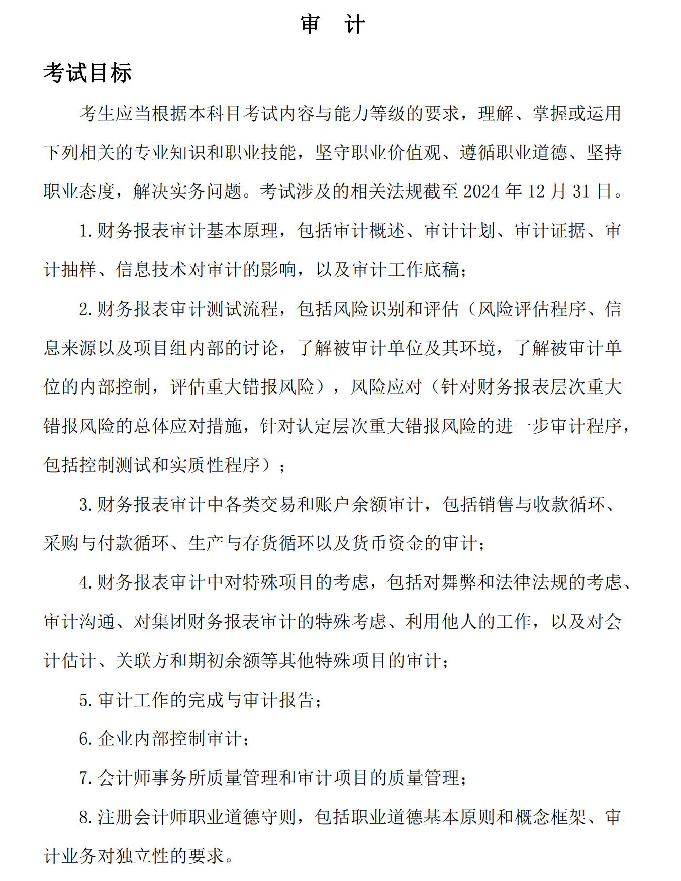 25年注會(huì)審計(jì)考試大綱