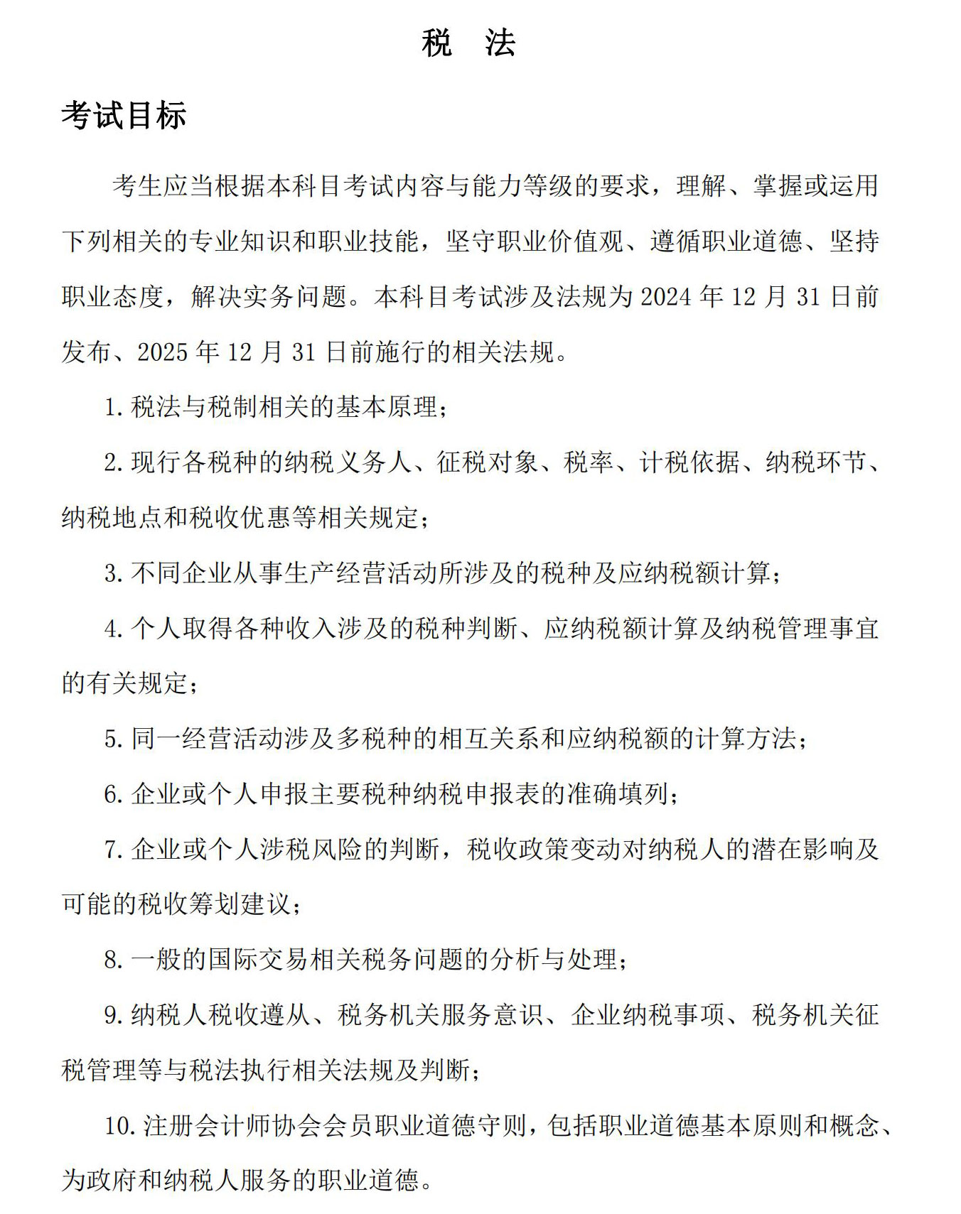 2025年注會《稅法》考試大綱