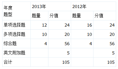 機(jī)考形勢下,總體難度在下降。下面為近兩年題型題量分析及題目類型的特點。