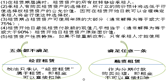 稅法沒(méi)有規(guī)定租賃的分類標(biāo)準(zhǔn),可以采用會(huì)計(jì)準(zhǔn)則對(duì)于租賃的分類和確認(rèn)標(biāo)準(zhǔn)。