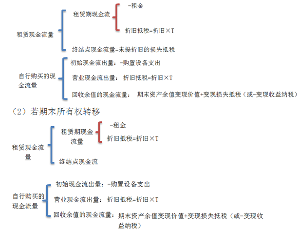 1.租賃凈現(xiàn)值=租賃的現(xiàn)金流量總現(xiàn)值-借款購(gòu)買的現(xiàn)金流量總現(xiàn)值(實(shí)際是將租賃與購(gòu)買對(duì)比)