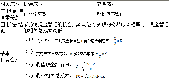 最佳現(xiàn)金持有量是使上述三項(xiàng)成本之和最小的現(xiàn)金持有量。 | ||