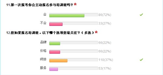 報告中顯示,絕大多數(shù)考生會選擇報考注會考試輔導(dǎo)班,約占72%,只有27%的考生不會報輔導(dǎo)班。而考生們選擇輔導(dǎo)機構(gòu)時最關(guān)注的是輔導(dǎo)班的師資(約占37%),其次是品牌和價格(均占22%),而相關(guān)機構(gòu)的服務(wù)占到17%。