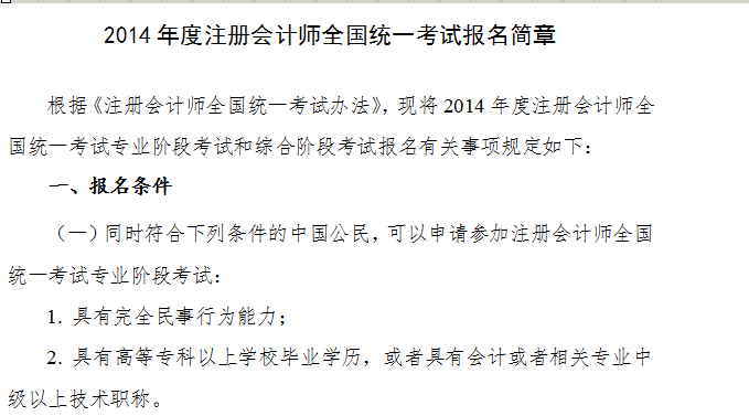 附:1.注會報名條件截圖