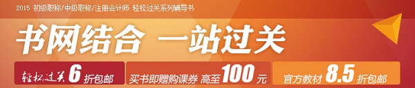 溫馨提示:購買2015注會《輕松過關(guān)一》、《輕松過關(guān)二》輔導(dǎo)書,買1本贈40元購課券,買2本送80元,教材8.5折包郵哦!