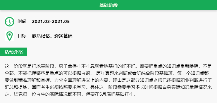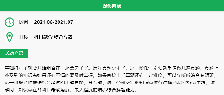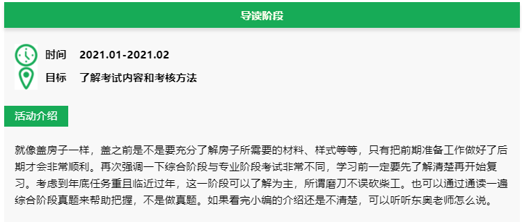 雖說綜合階段是三科放在一起考,案例就有6-7千字,會給人一種綜合性特別強難以入手的錯覺。但是實際上也沒有想象中那么的綜合,也僅是個別的知識點進行融合。而所謂的融合還是要基于單一學科的基本知識,要想做好綜合題,單一學科的基本功就一定要扎實。前中期還是要先復習單科基本知識。在后期進行綜合知識的練習,切忌上來就開始做綜合題,那無疑是在給自己挖坑。為了幫助大家更好地復習,特意準為大家備了學習計劃。
