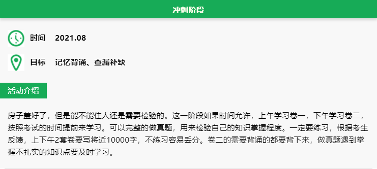 與試卷一不同,試卷二知識點更適合突擊,知識結構屬于積累和遺忘都比較迅速的,在備考中后期可以逐漸把復習重心從試卷一轉移至試卷二。