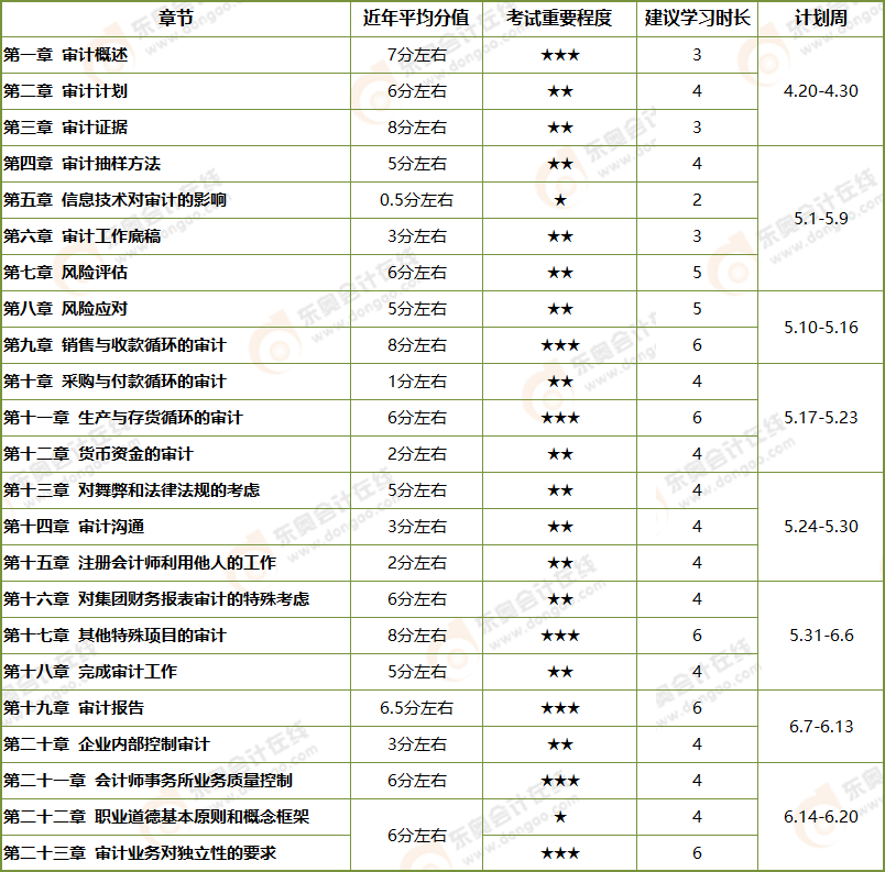 注會審計共有23章,其中一星考點2章、二星考點14章、3星考點7章。為了幫助考生們提高報考效率,東奧小編也為大家標注了各章節(jié)近幾年的出題分值及每章節(jié)的學習時長。畢竟今年的注會考試提前至8月舉行,備考時間對于大家來說非常珍貴,所以盡量把時間花在重點章節(jié)上。東奧小編也根據(jù)劉圣妮老師的基礎班課程整理了各科目的重要知識點,千萬別錯過哦!