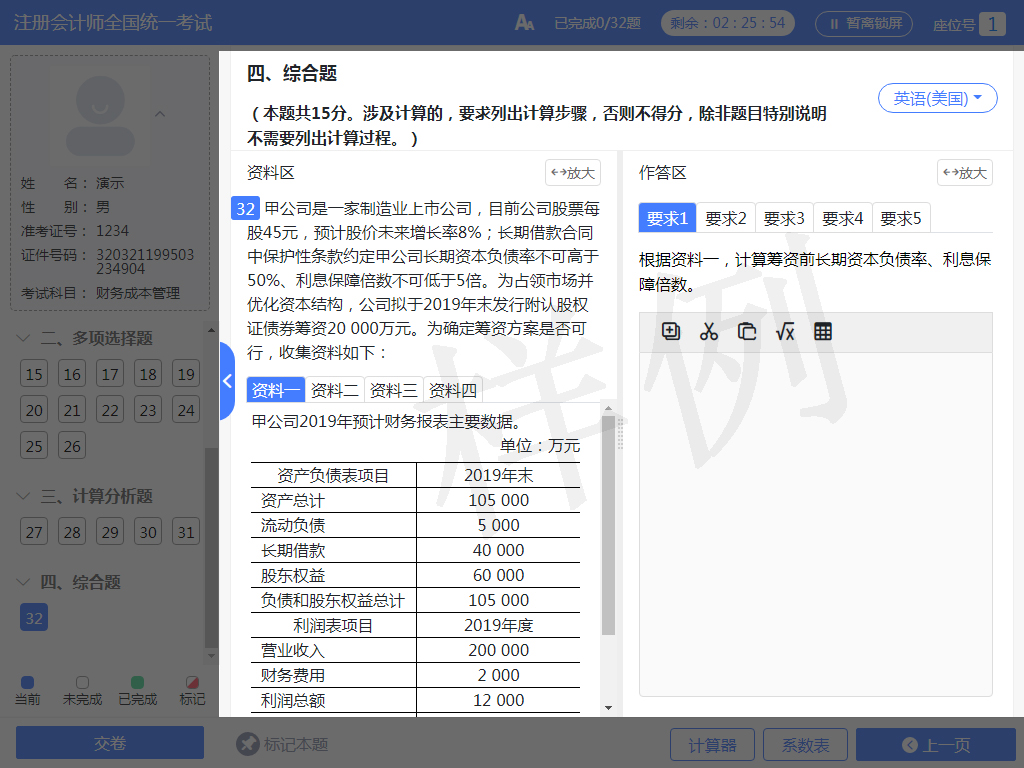 CPA機(jī)考系統(tǒng)主觀題答題界面
