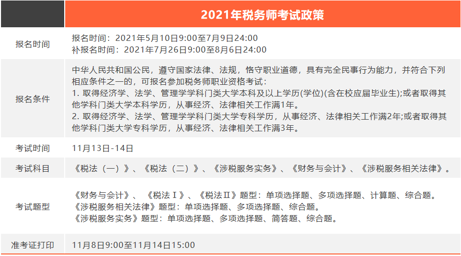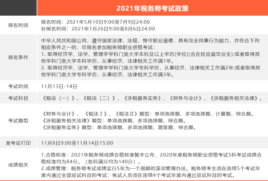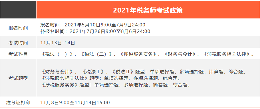 2021年稅務師考試政策