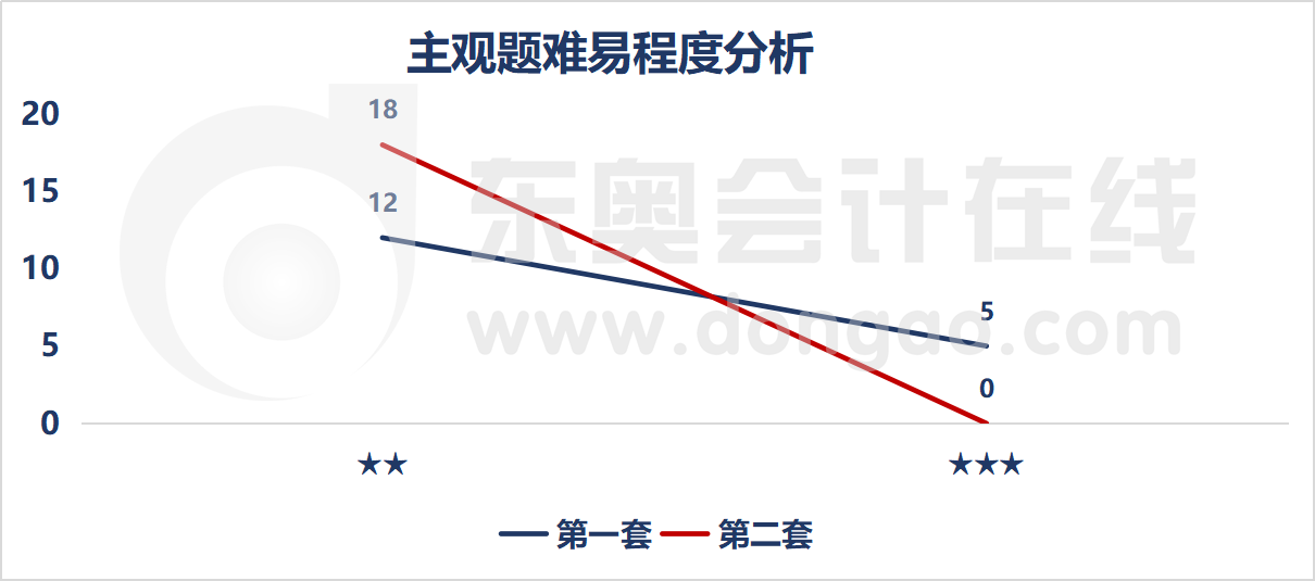 2021年注會(huì)戰(zhàn)略考試中,主觀題共有19小題,其中二星考點(diǎn)最多,為15道,一星考點(diǎn)為3道;三星考點(diǎn)僅有1道。