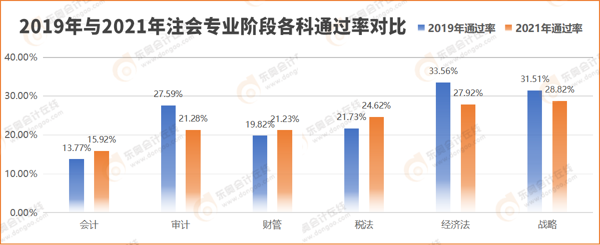 2019年與2021年注會專業(yè)階段各科通過率對比