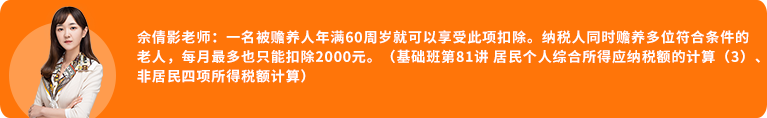 納稅人為非獨(dú)生子女的:由其與兄弟姐妹分?jǐn)偯吭?000元(每年24000元)的扣除額度,每人分?jǐn)偟念~度不得超過每月1000元(每年12000元)。