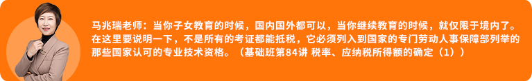 接受技能人員職業(yè)資格繼續(xù)教育、專業(yè)技術(shù)人員職業(yè)資格繼續(xù)教育支出:取得相關(guān)證書的當(dāng)年,按照3600元定額扣除。
