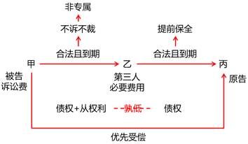 (5)在代位權(quán)訴訟中,債權(quán)人勝訴的,訴訟費(fèi)由次債務(wù)人負(fù)擔(dān),從實(shí)現(xiàn)的債權(quán)中優(yōu)先支付。