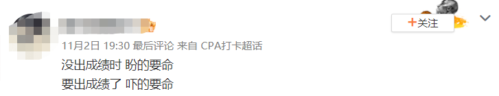 中注協(xié)在注會報名簡章中沒有明確規(guī)定出分具體日期,只表明將于2022年11月下旬公布成績。不僅考生們時刻關注,就連小編也會每天登錄網報系統(tǒng)和微博超話查看注會查分新動態(tài)。注會成績代表著考生們一年來的奮斗成果,大家等出分的焦急心情溢于言表……