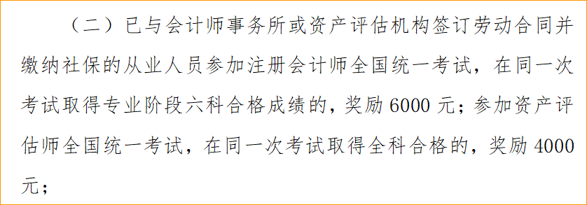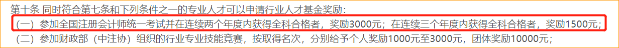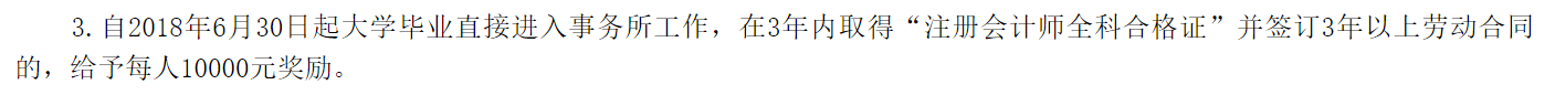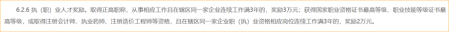 福利:或取得注冊會計師資格,且在轄區(qū)同一家企業(yè)職(執(zhí))業(yè)資格相應(yīng)崗位連續(xù)工作滿3年的,獎勵2萬元。