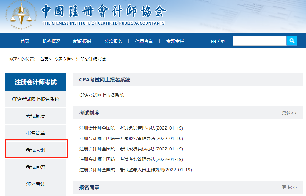 考生可通過(guò)“中國(guó)注冊(cè)會(huì)計(jì)師協(xié)會(huì)”官網(wǎng)找到注會(huì)考試大綱詳細(xì)內(nèi)容,步驟如下: