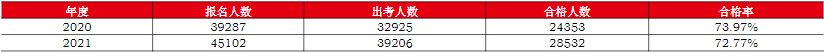 根據(jù)中注協(xié)發(fā)布的《2021年注冊(cè)會(huì)計(jì)師全國(guó)統(tǒng)一考試分析報(bào)告》顯示,綜合階段考試合格率為72.77%。以下為2020年-2021年綜合階段考試合格率: