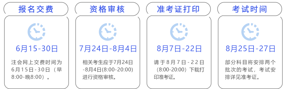 好的學習方法+周密的學習計劃+持之以恒的堅持=通過考試的必勝法寶!通往注會的道路上必定荊棘坎坷,我們逢山開路、遇水架橋,最終定會達到勝利的彼岸!完成報名的考生請牢記下方重要時間節(jié)點。