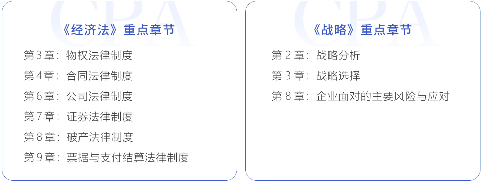 如審計、經(jīng)濟法和戰(zhàn)略這類偏向文科類的科目,需要記憶的內(nèi)容非常多。在備考這類科目時,建議考生利用聯(lián)想+閱讀理解的學習方法,分析各章節(jié)的各個因素。