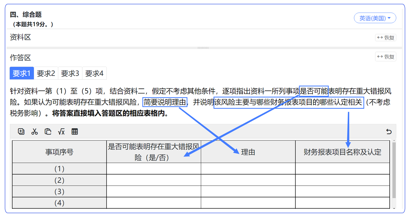 主觀題按照提問方式,大致可以分為以下兩類。我們以注會考試模擬機考系統(tǒng)中的例題為例。