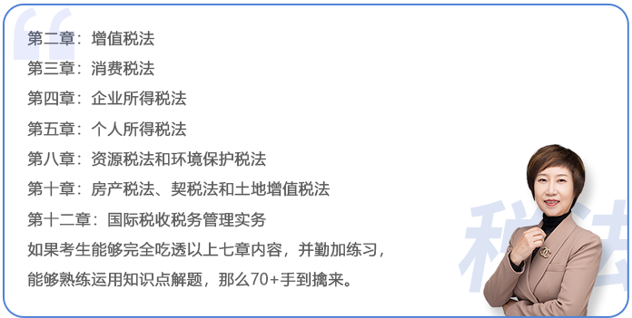 建議考生充分掌握每章的幾個記憶要點如征稅對象、計稅方法、稅收優(yōu)惠、征收管理等,考試更易得分。