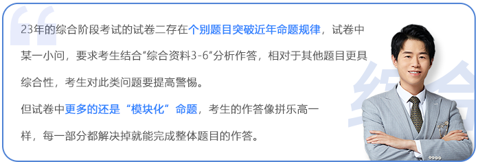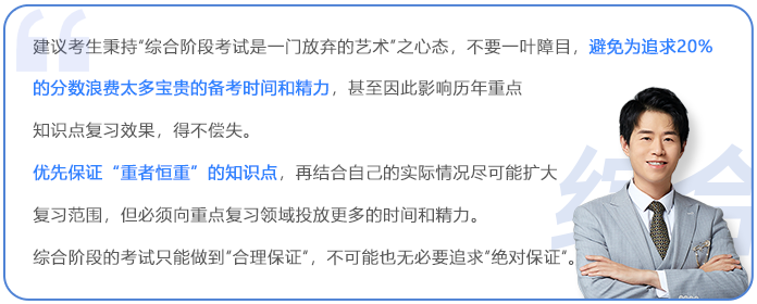 但提醒大家盡量避免“路徑依賴”,切忌沿襲專業(yè)階段的復(fù)習(xí)思路,一定要及時將復(fù)習(xí)備考思路和策略調(diào)整、切換到綜合階段上來。