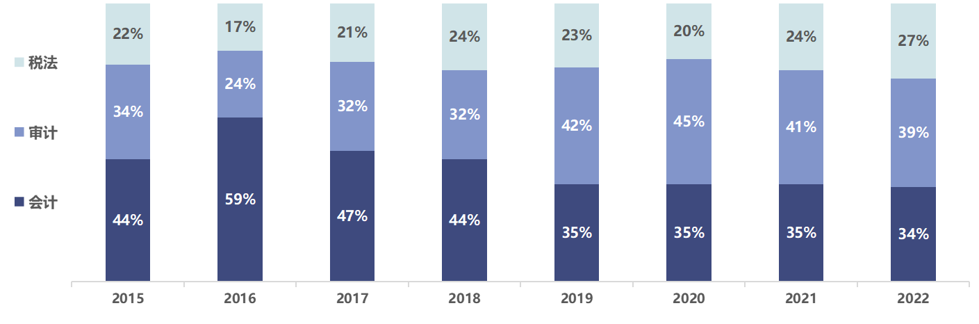 從近年試卷一3科的題量占比可以看出,試卷一考核以會計、審計為主,稅法為輔,但稅法有逐年增長的趨勢,不容輕視。