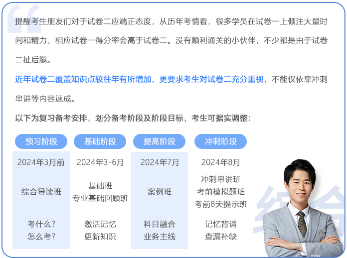 在2024年官方考試大綱和教材公布前,有條件的考生也可以利用2023年綜合階段基礎(chǔ)班課程學(xué)習(xí)。