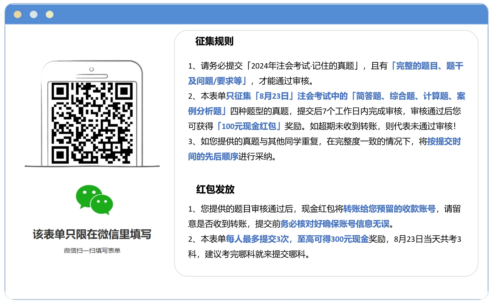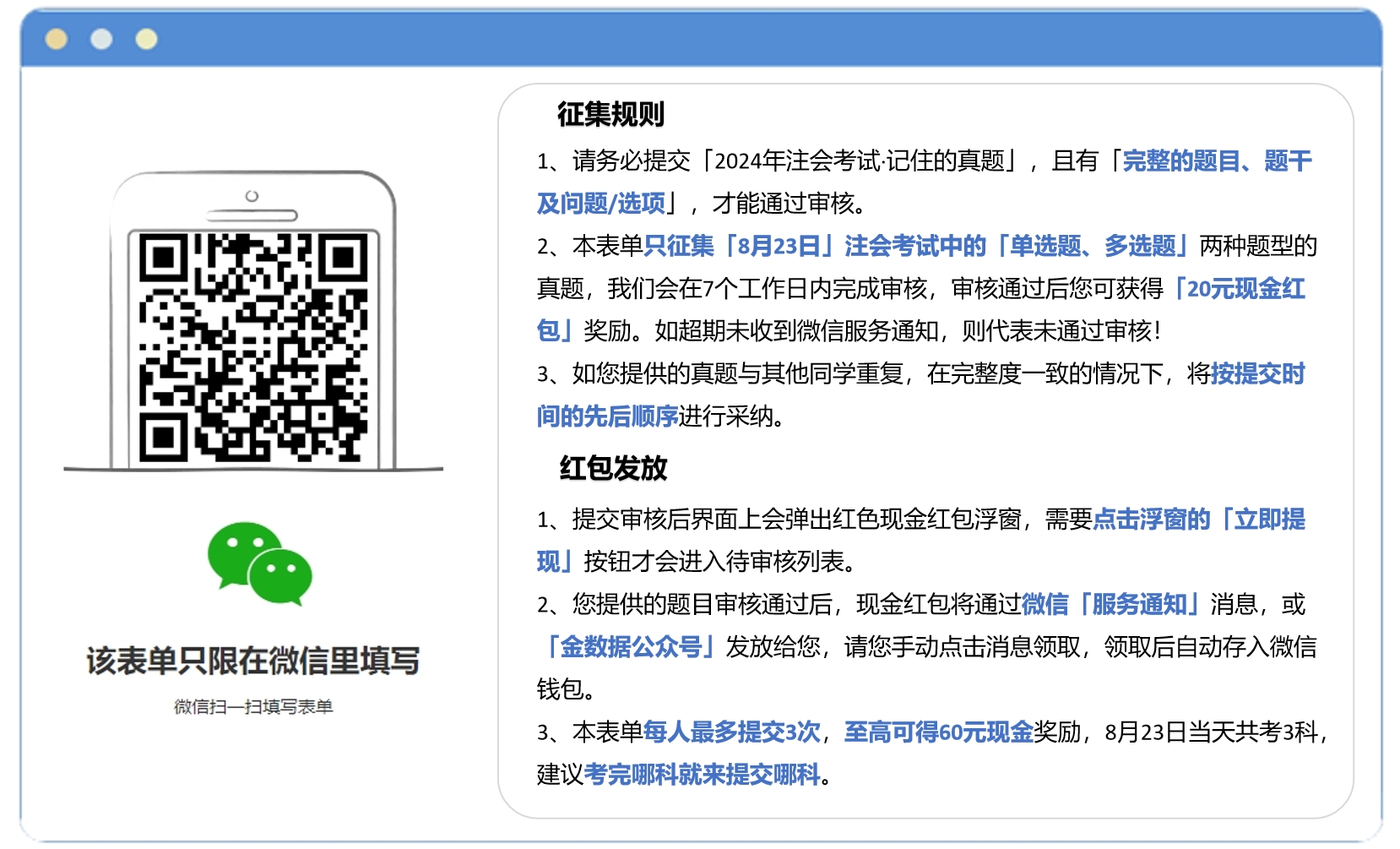 2024注會考試有獎征題開始啦!掃碼參與讓“憶題”贏一次!