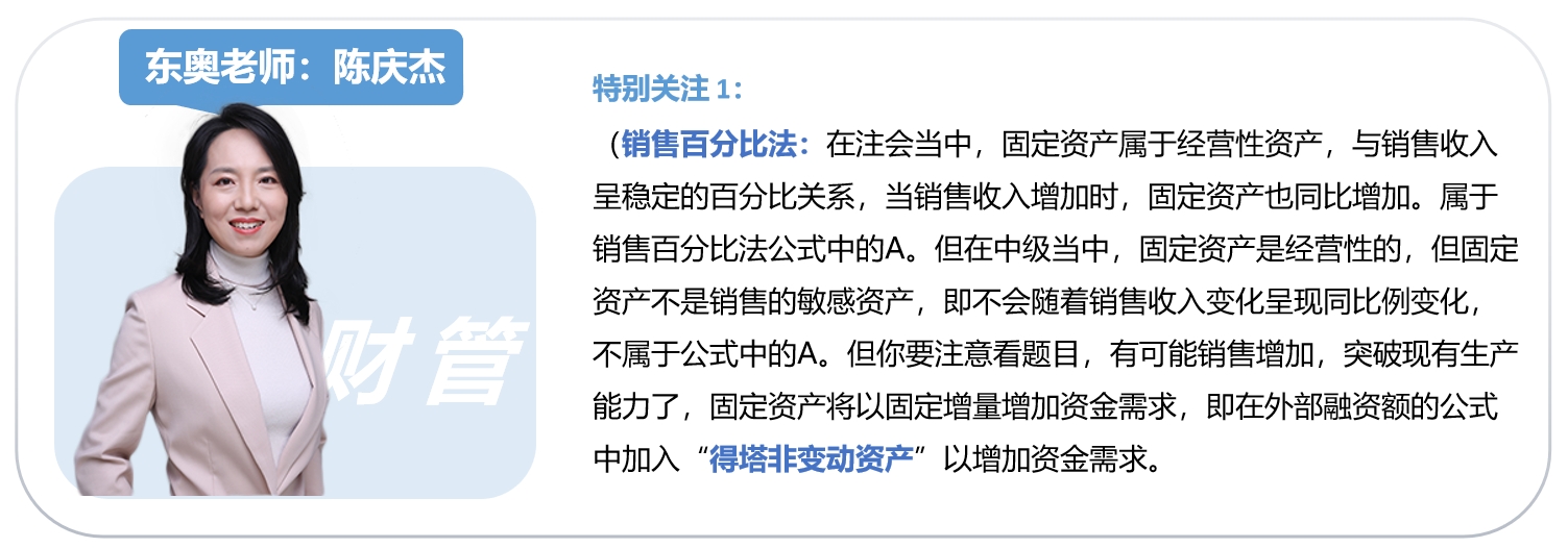 2.資金習(xí)性預(yù)測(注會簡化,中級詳細(xì))(注意銷售百分比法,在中級考試中,固定資產(chǎn)不是敏感資產(chǎn),如果固定資產(chǎn)增加,則是以固定增量增加資金需求)(基礎(chǔ)班第32/33講)
