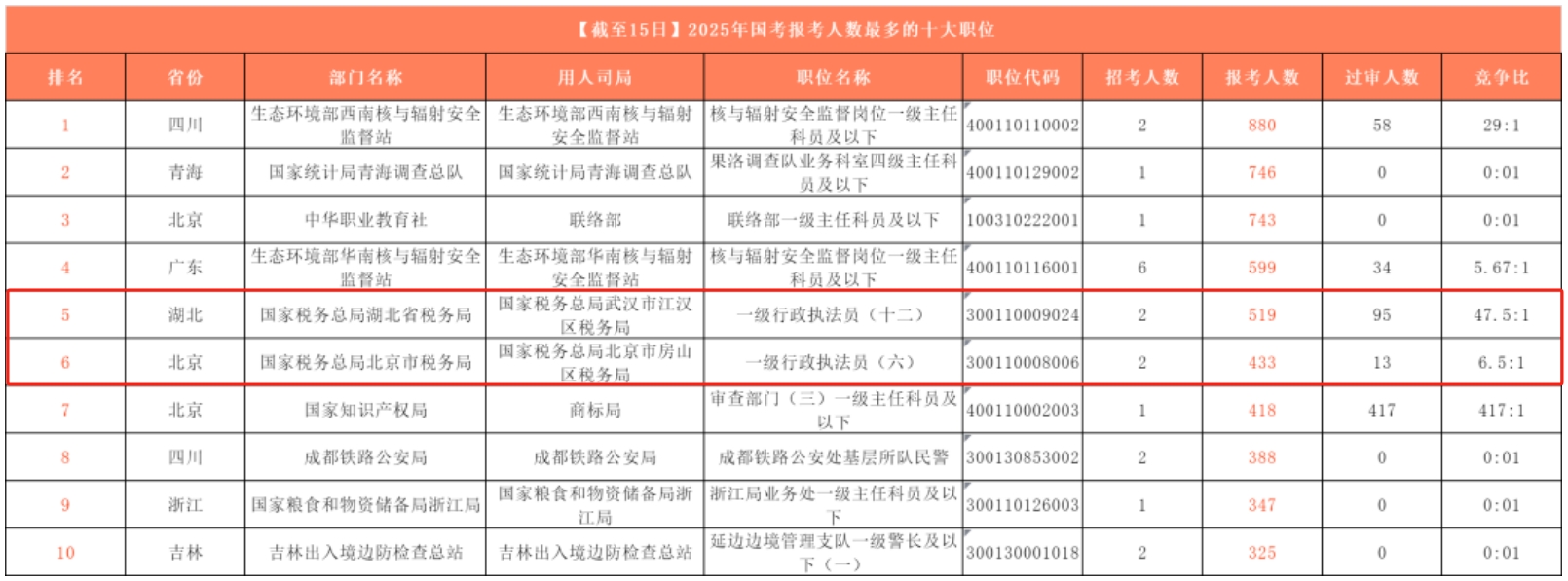 (2025國考報名人數最多的十大職位,點擊看大圖)
