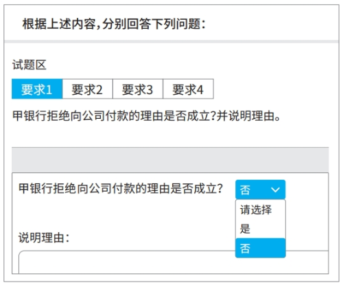 按照2024年機(jī)考系統(tǒng)的情況,案例分析題大部分的答題區(qū)域設(shè)有下拉框(如圖),考生務(wù)必點(diǎn)擊下拉框后作出“是 / 否”“符合 / 不符合”的明確選擇;如遇少量提問沒有設(shè)置下拉框,請考生在答題區(qū)域中一定先明確回答問題,表明您的判斷。
