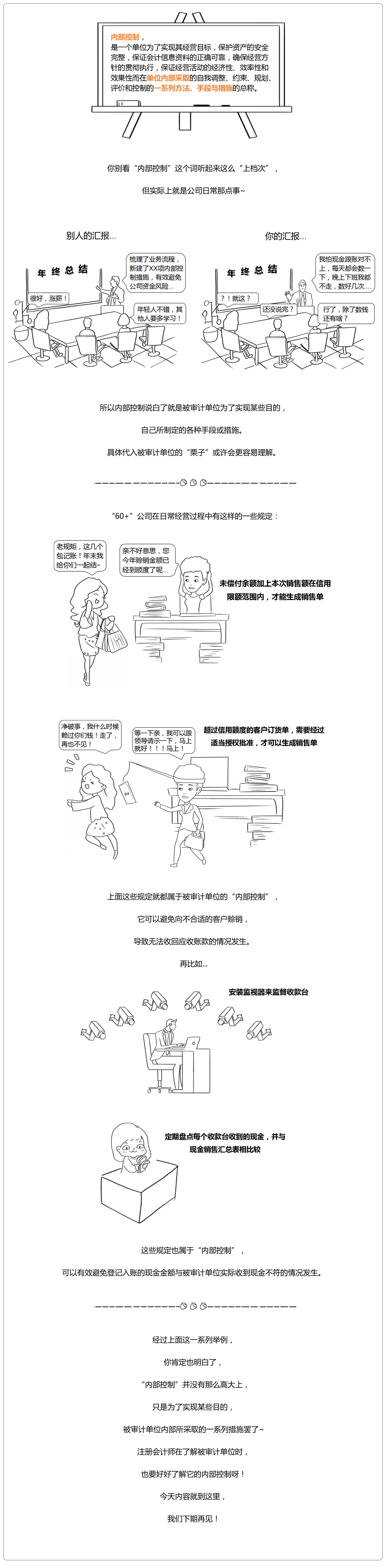 注冊會計師在了解被審計單位環(huán)境時,需要了解被審計單位的內(nèi)部控制,那到底什么是內(nèi)部控制呢?今天就讓我們用文字+漫畫的趣味形式帶大家來了解一下內(nèi)部控制的內(nèi)涵,趕快一起進入到審計零基礎入門——名詞新語第十二回:內(nèi)部控制吧!
