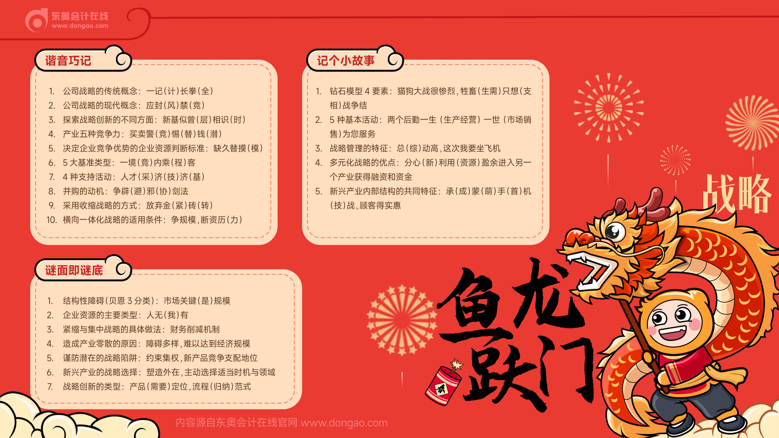 東奧會(huì)計(jì)在線,在新年里將注會(huì)各科記憶碎片,提煉設(shè)計(jì),以新春福袋的形式,為同學(xué)們送去助考福氣。注會(huì)《戰(zhàn)略》知識(shí)壁紙,快來(lái)領(lǐng)取吧。