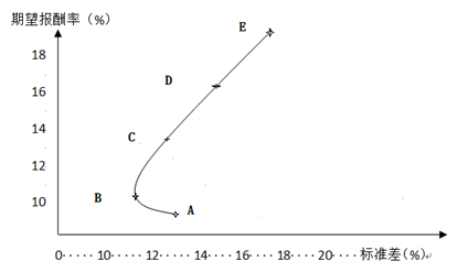 【答案解析】 機會集組合包括有效集組合和無效集組合,從最低期望報酬率組合點到最高期望報酬率組合點的那段曲線為機會集即ABE曲線。最小方差點是B點,而沒有人會打算持有期望報酬率比最小方差組合期望報酬率還低的投資組合,所以有效集組合是BE曲線,而無效集組合是AB曲線。